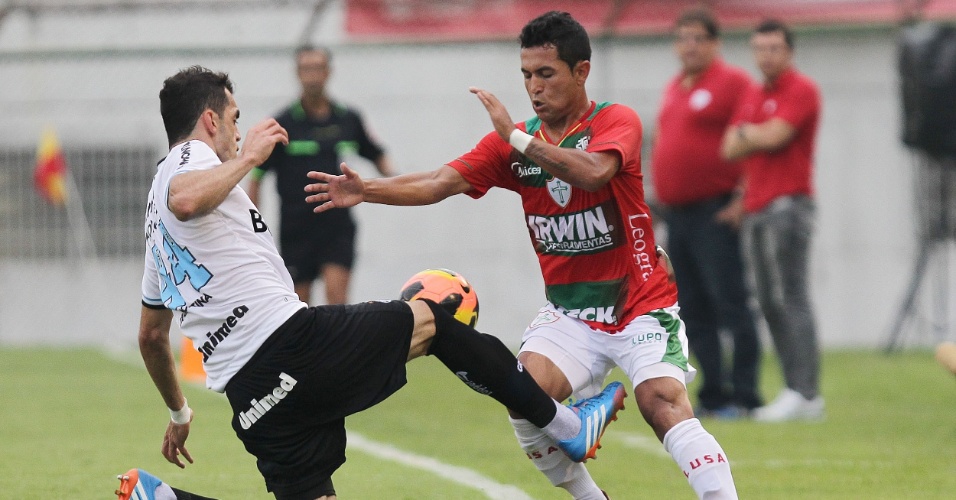 Grêmio e Portuguesa contrariaram a expectativa nos minutos iniciais. No começo da partida, ambos tentaram o gol. O primeiro lance efetivo do Grêmio ocorreu aos 3 minutos, quando Barcos entrou na área e bateu. Lauro defendeu. A resposta da Portuguesa veio em seguida. Aos 12, Moisés tentou enfiar para Diogo, mas Souza afastou evitando o pior para o Grêmio.