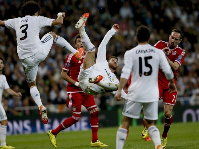 O Bayern chegou, no 1° tempo, a ter 74% de posse de bola. De nada serviu. Carlo Ancelotti, técnico do Real, armou seu time quase como José Mourinho fez no empate entre Chelsea e Atlético de Madri, terça-feira: na defesa. Mas com um diferencial. O Real abusou dos contra-ataques e foi assim que matou o jogo, levando a vantagem para a volta, em Munique, na próxima semana.
