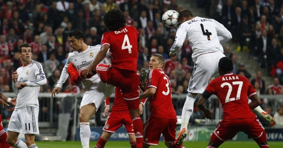 Três dos gols saíram no 1° tempo, todos em estilos que Guardiola não pratica. Sergio Ramos, aos 15 min. e aos 19 min., anotou duas vezes de cabeça, para praticamente tirar qualquer esperança do Bayern em virar - o primeiro saiu em escanteio, o segundo após cobrança de falta.